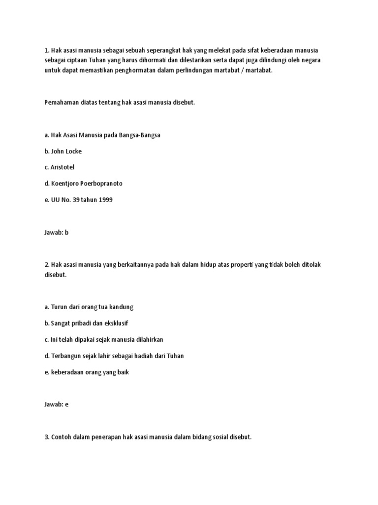 DOC) Soal Hak Asasi Manusia | nur wasis - Academia.edu