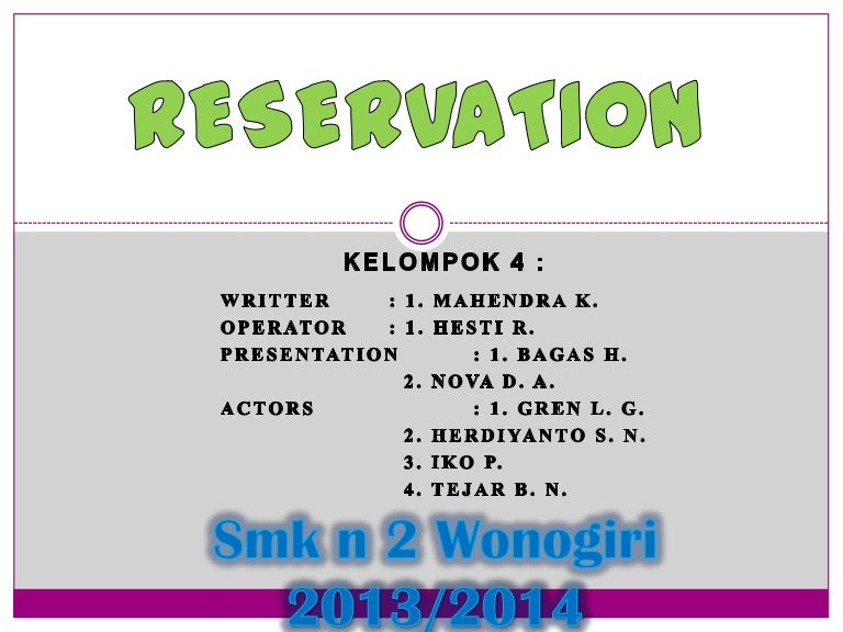 Reservation - Hesti Romadhoni SMK N 2 WONOGIRI :)