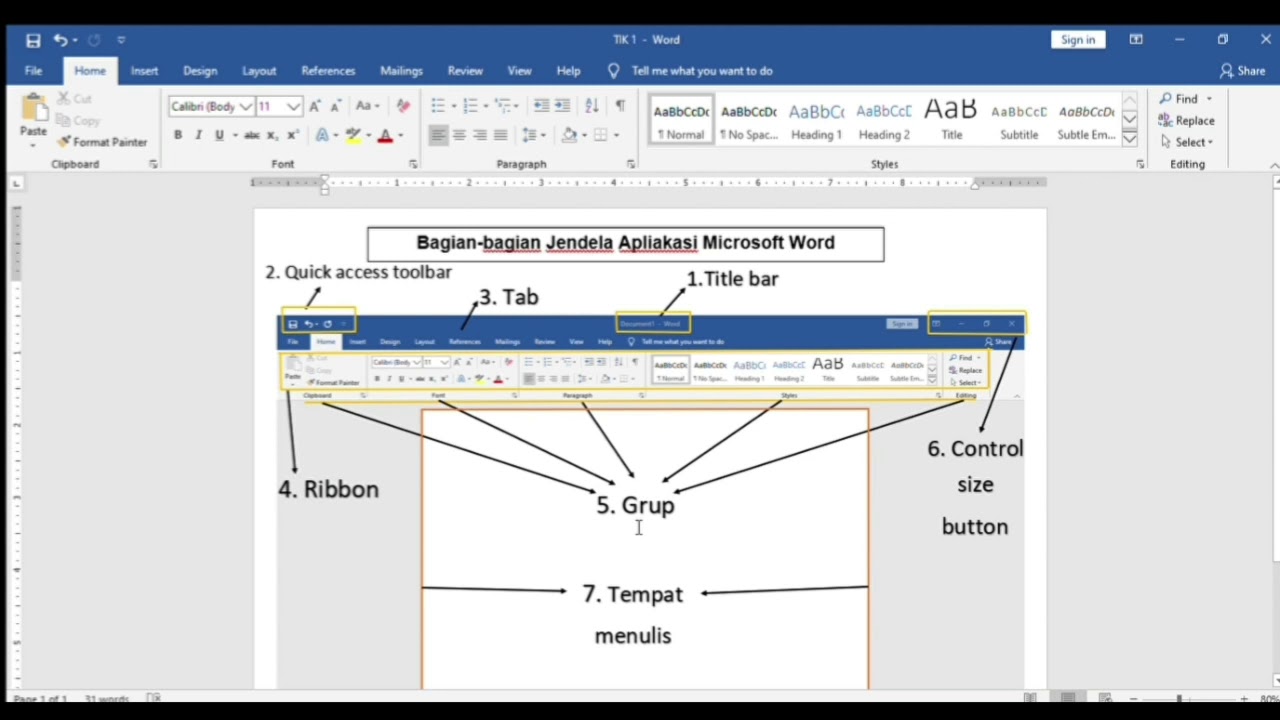 MENGENAL BAGIAN- BAGIAN JENDELA MS WORD - YouTube