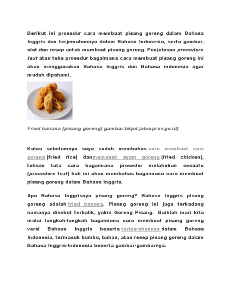 Cara Membuat Pisang Goreng Dalam Bahasa Inggris Indonesia Prosedur