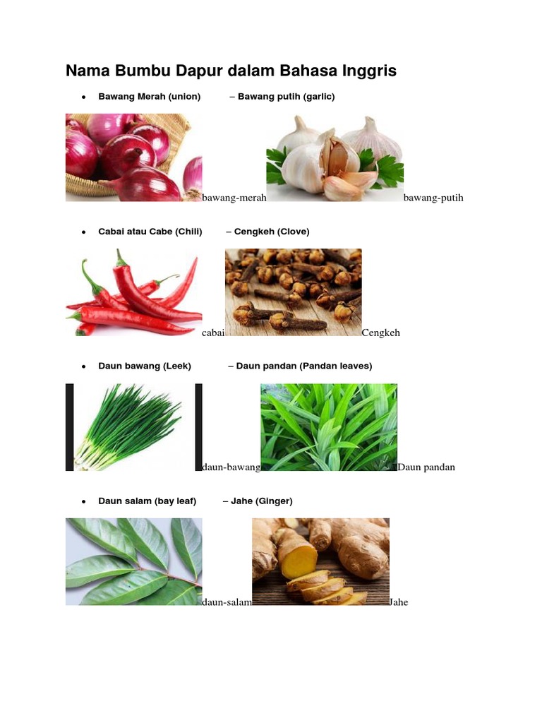 Istilah Bumbu Dalam Bahasa Inggris | Teaching, Writing, Learning