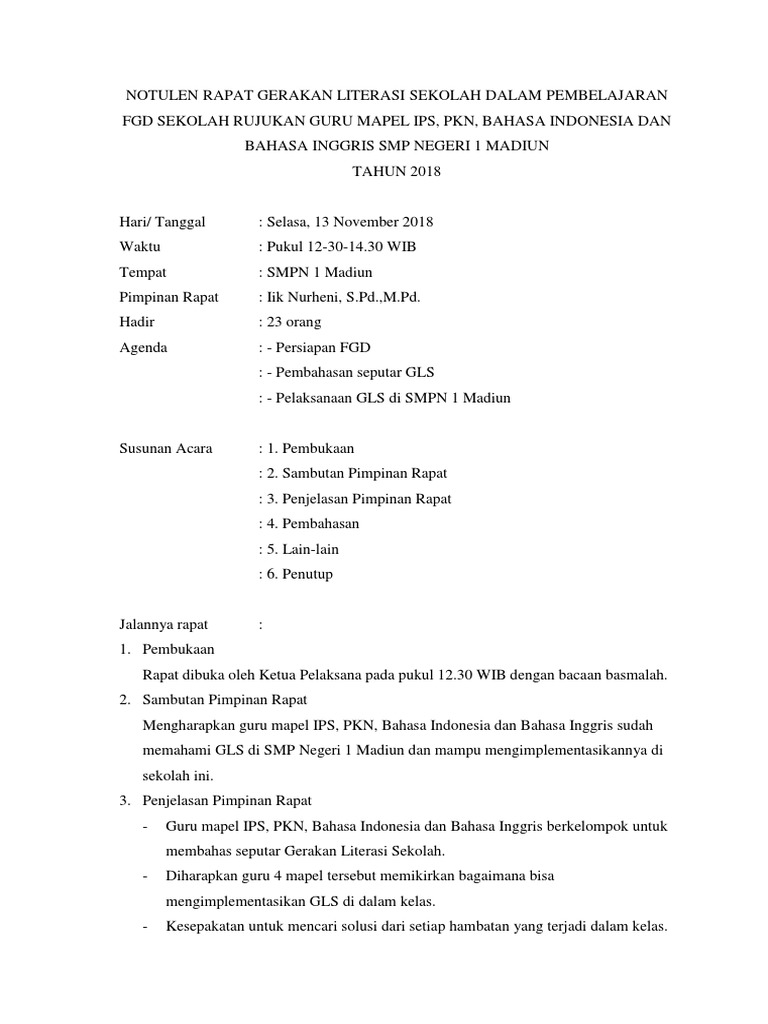 Notulen Rapat Gerakan Literasi Sekolah Dalam Pembelajaran