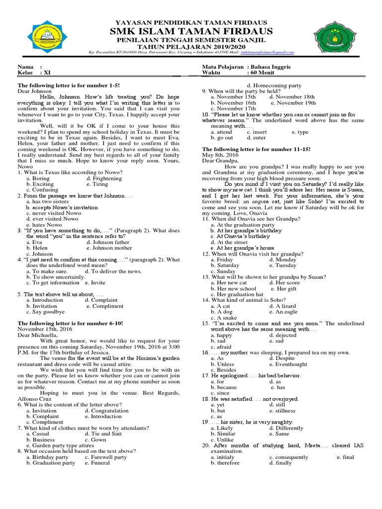 Soal PTS Bahasa Inggris SMK Kelas XI