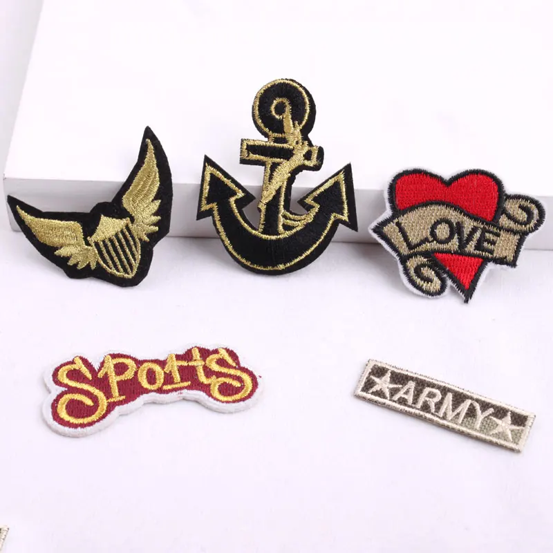 Surat bahasa inggris, cinta jangkar perahu, benang emas armband, pakaian dan celana, dekorasi, perbaikan, dun, setrika, kain applique|Tambalan| - AliExpress