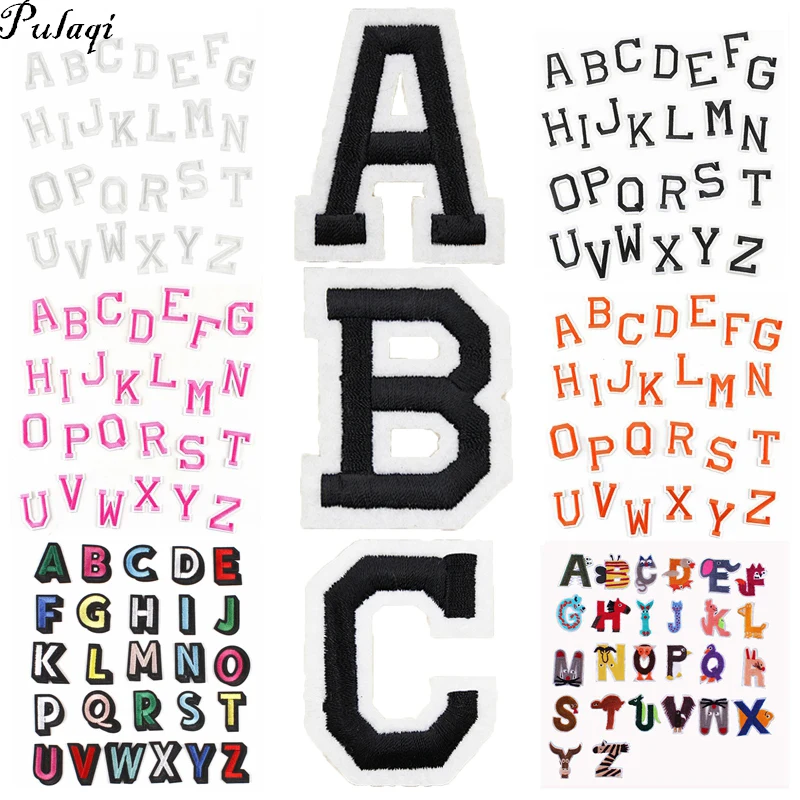 Pulaqi Grosir 26 Bahasa Inggris Huruf Patch Set Menjahit Pada Setrika T Shirt Stiker Besi Pada Garis garis Pada Pakaian kain Diy Stiker H|Tambalan| - AliExpress