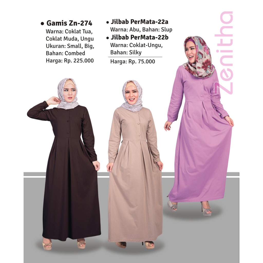 gamis zenitha zn 274 coklat tua, coklat muda, ungu | Shopee Indonesia