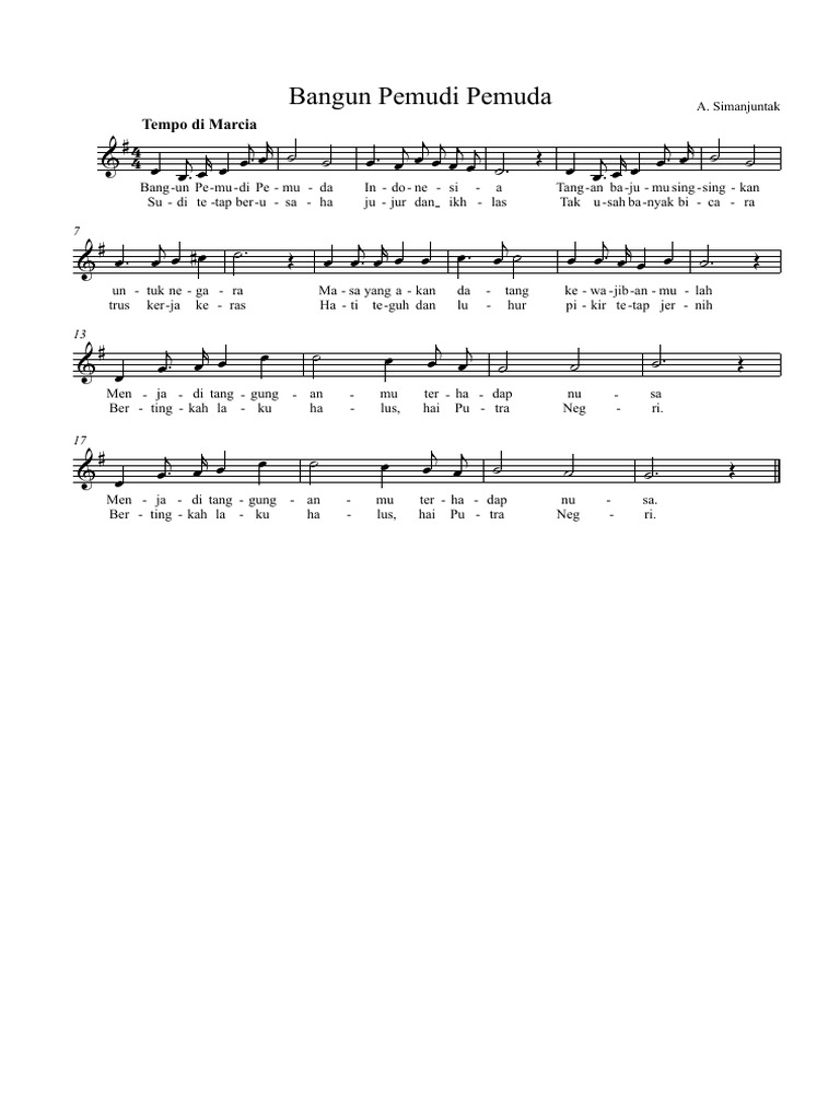 Notasi Lagu Bangun Pemuda-Pemudi | Arpegio Sheet Music - Tempat …