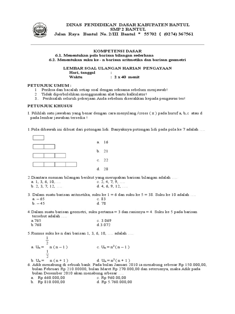 Soal Barisan bilangan