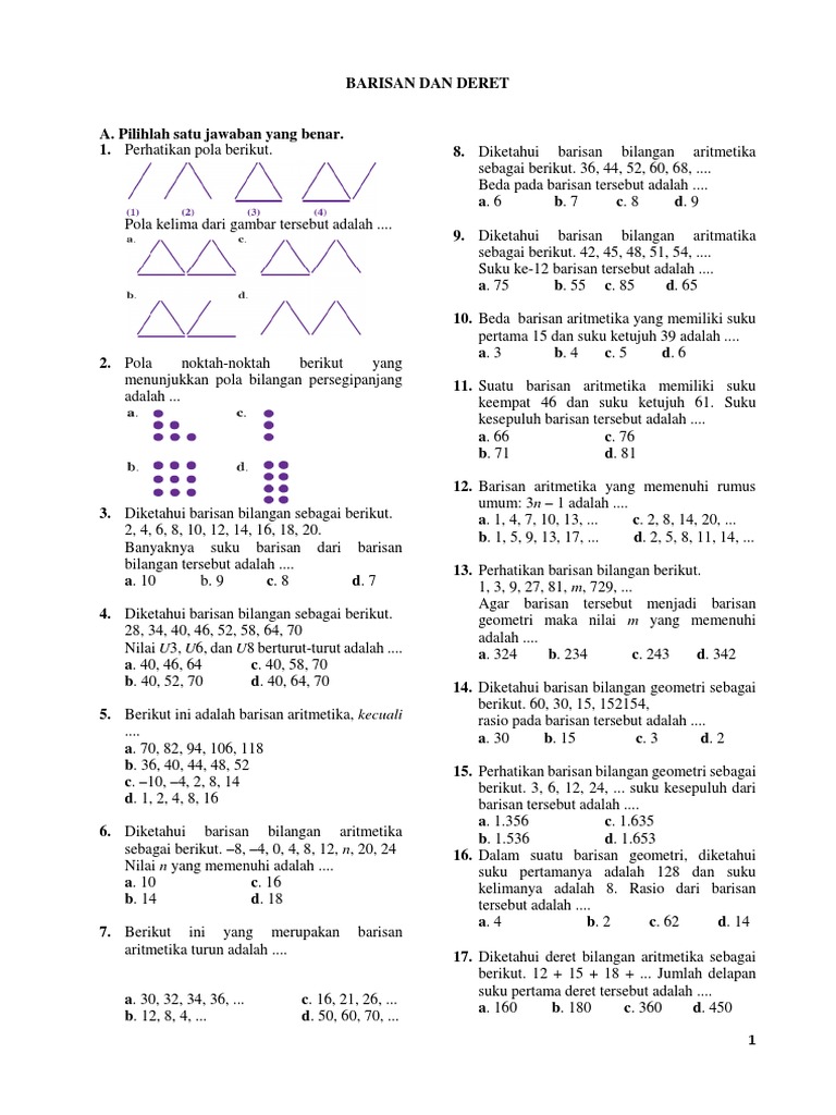 1 b. barisan bilangan