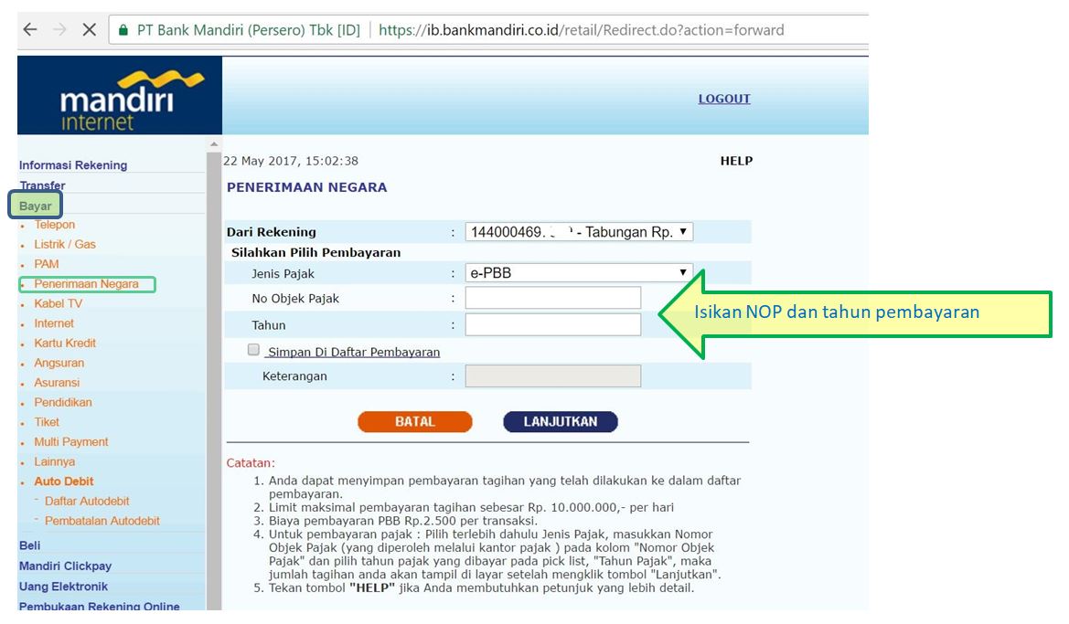 Cara Bayar Pbb Di Atm Mandiri
