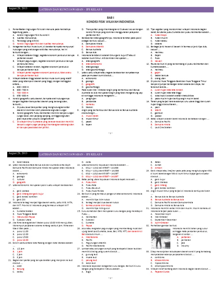 SOAL IPS KELAS VIII _ KONDISI FISIK WILAYAH INDONESIA