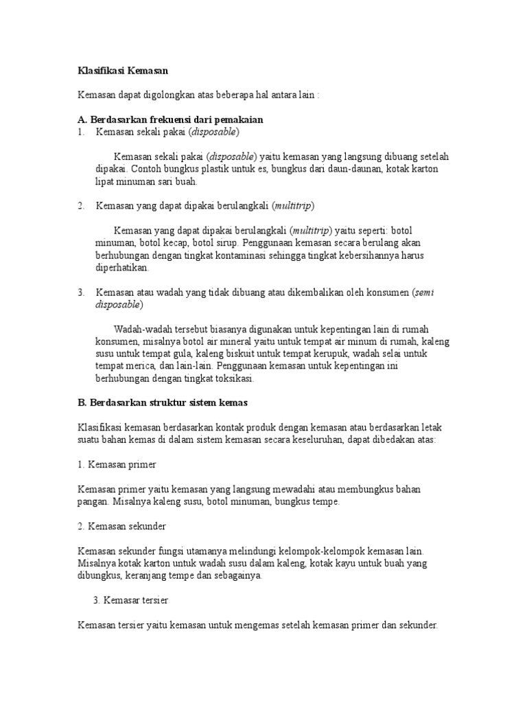 klasifikasi kemasan