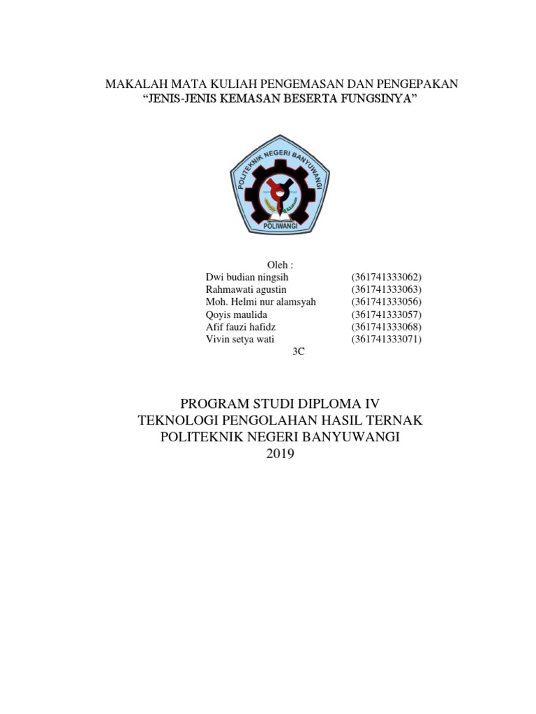 Makalah Mata Kuliah Pengemasan Dan Pengepakan “Jenis-Jenis Kemasan Beserta Fungsinya”