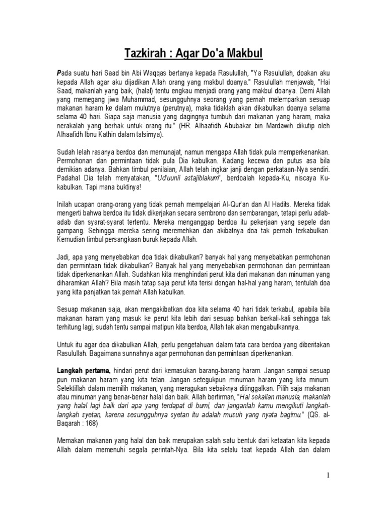 Risalah Dakwah 034 : Tazkirah Agar Doa Makbul