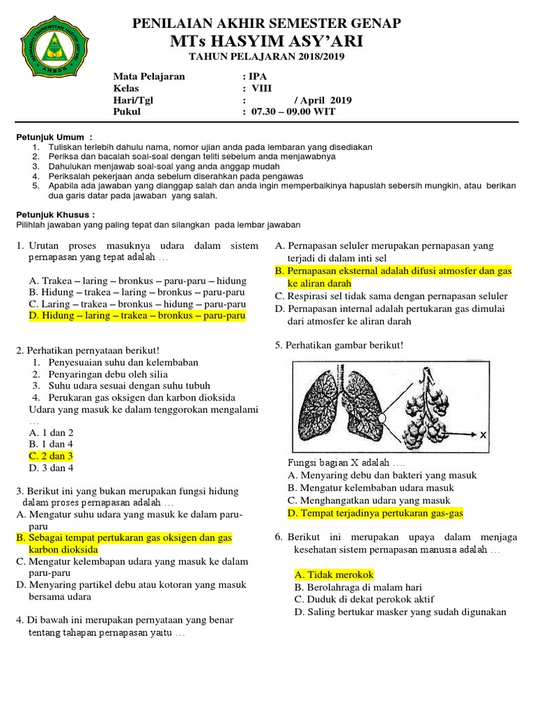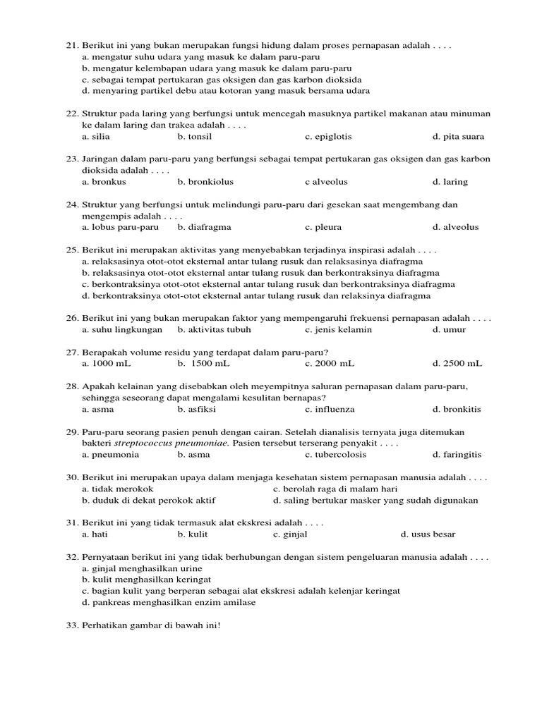 15 Soal dan Jawaban Sistem Pernapasan pada Manusia Kelas 8 …