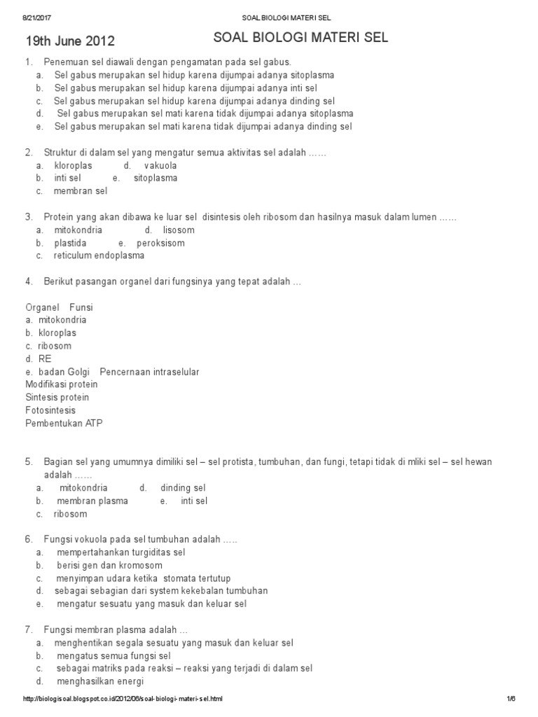 Soal tentang sel beserta jawabannya - [DOCX Document]