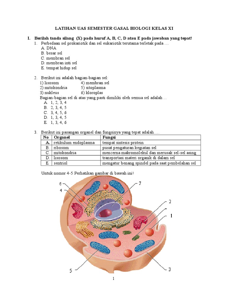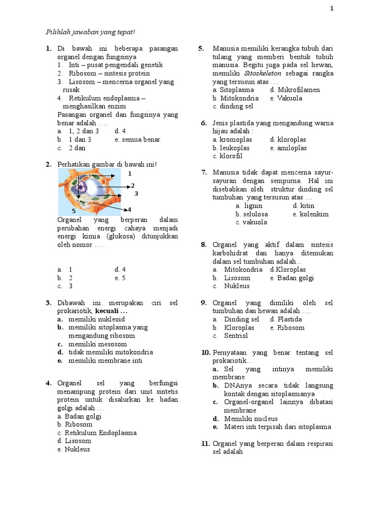 Soal Materi Sel, Kelas XI SMA - Info Pendidikan dan Biologi