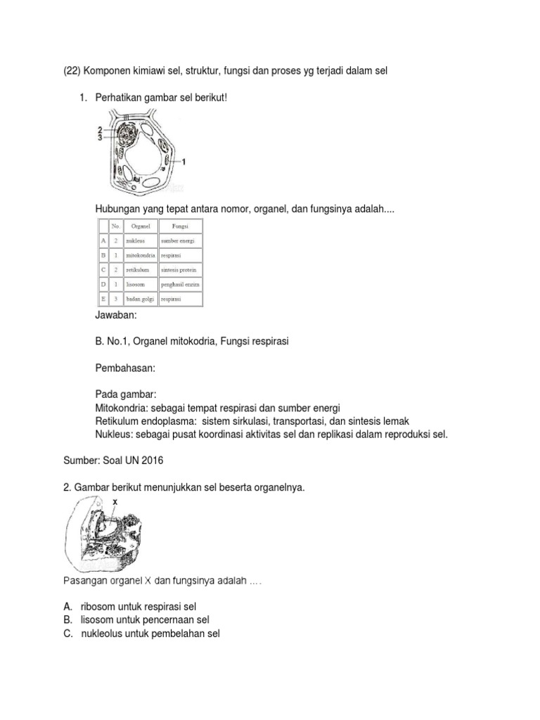 Contoh Soal Struktur Fungsi Susunan Kimia Sel 1 | idschool