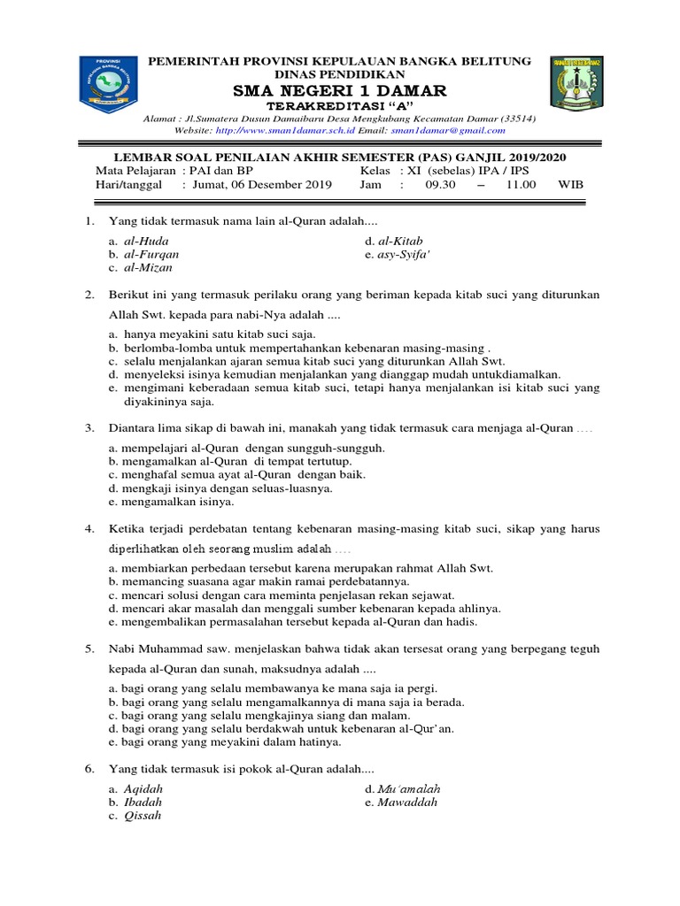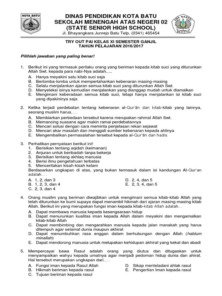 Soal Latihan PAI Tentang Iman Kepada Kitab-Kitab Kelas XI SMA/SMK Terbaru - Bacaan Madani | Bacaan Islami dan Bacaan Masyarakat Madani