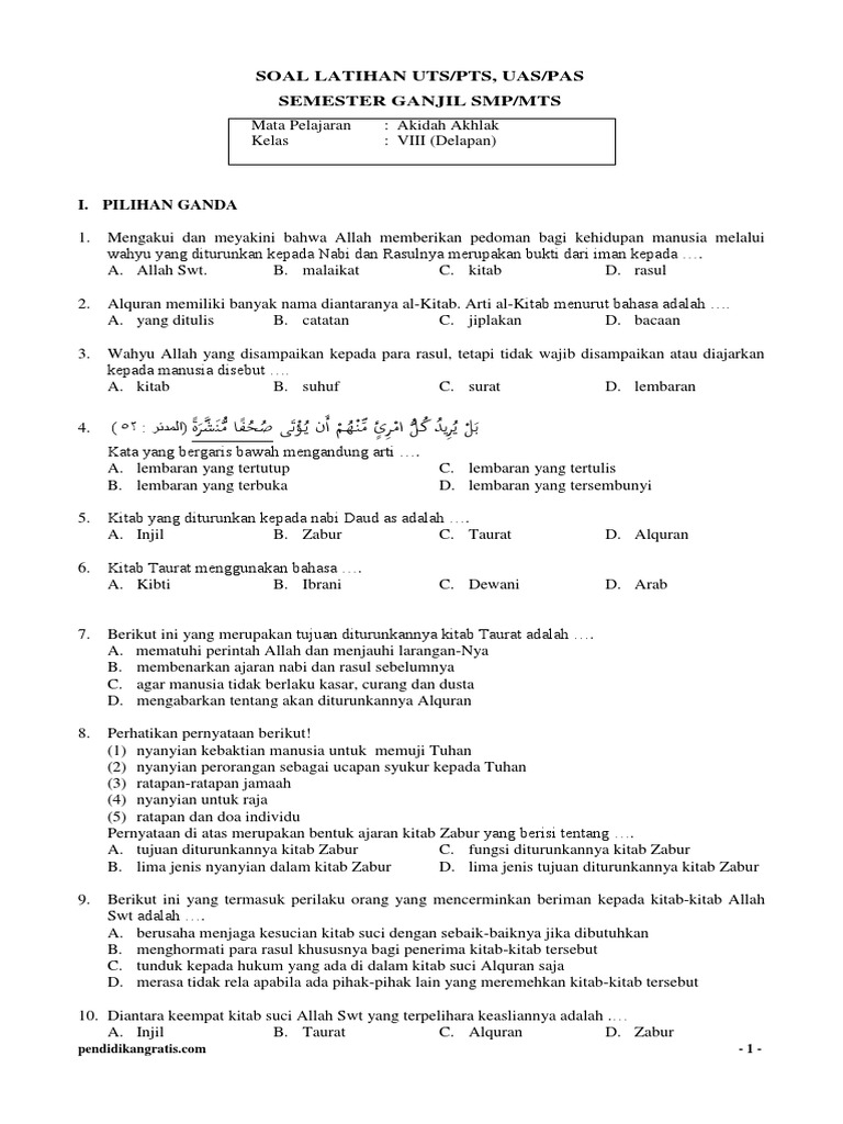 DOC) Soal uts akidah akhlak mts sa balaraja | sueb rizal - Academia.edu