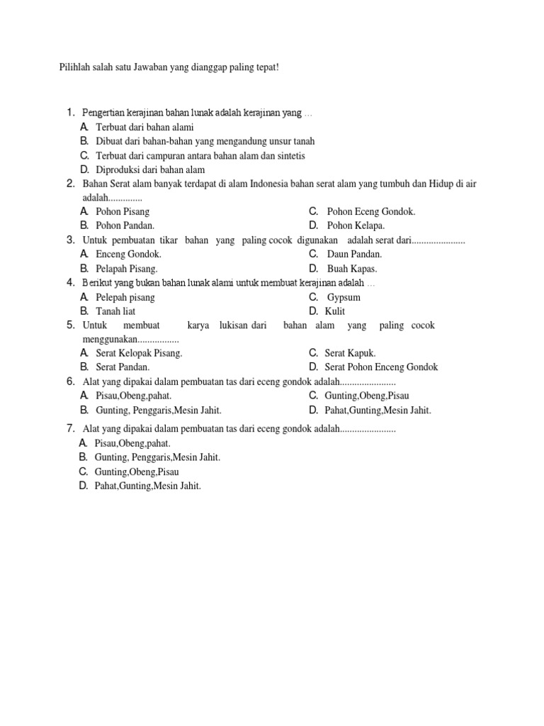 soal dan jawaban prakarya bahan lunak