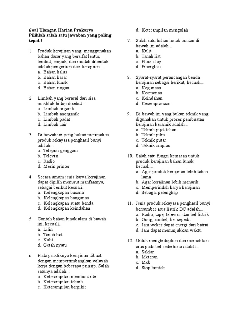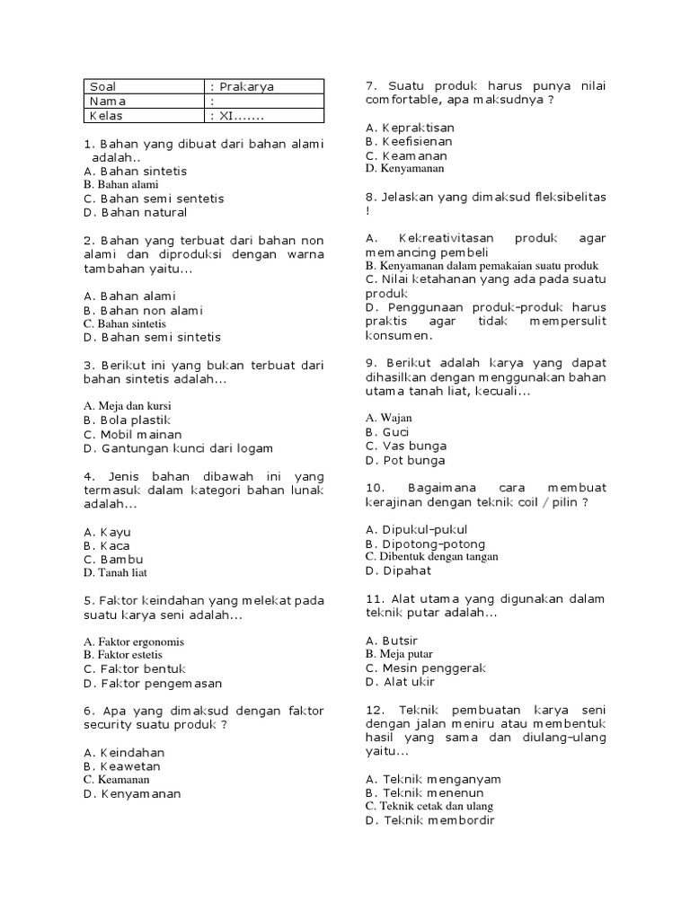soal prakarya