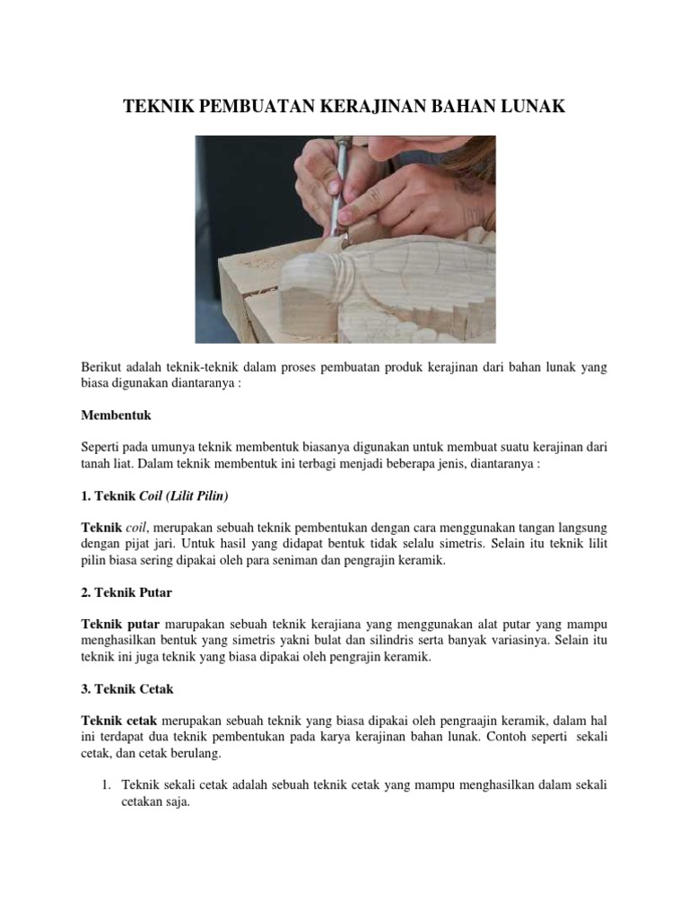 Berikut ini yang tidak termasuk teknik pembuatan produk kerajinan dari bahan lunak adalah…. - Brainly.co.id