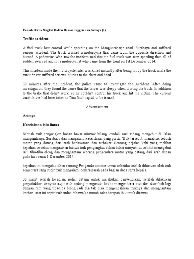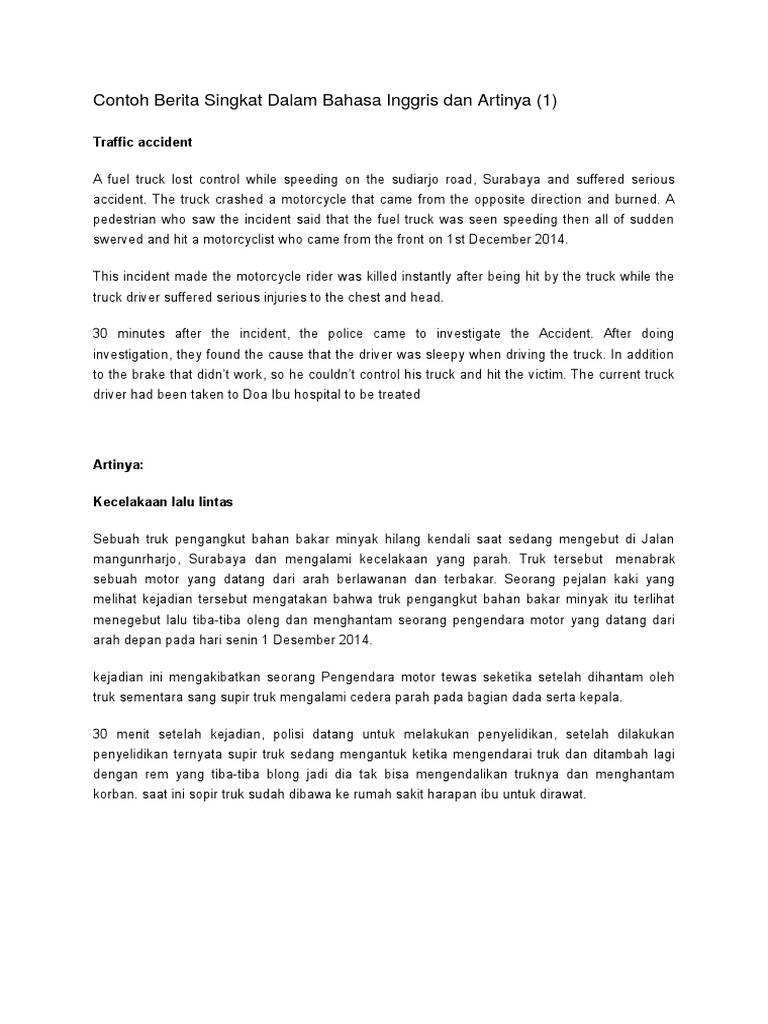 Contoh Berita Singkat Dalam Bahasa Inggris Dan Terjemahnya - Abimuda