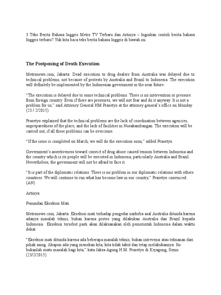 Berita Dalam Bahasa Inggris Di Metro Tv Kumpulan Contoh Berita …