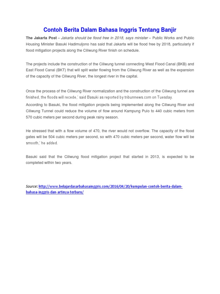 2 Contoh Teks Berita Banjir Dalam Bahasa Inggris Dan …