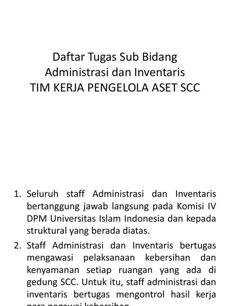 Daftar Tugas Sub Bidang Administrasi Dan Inventaris