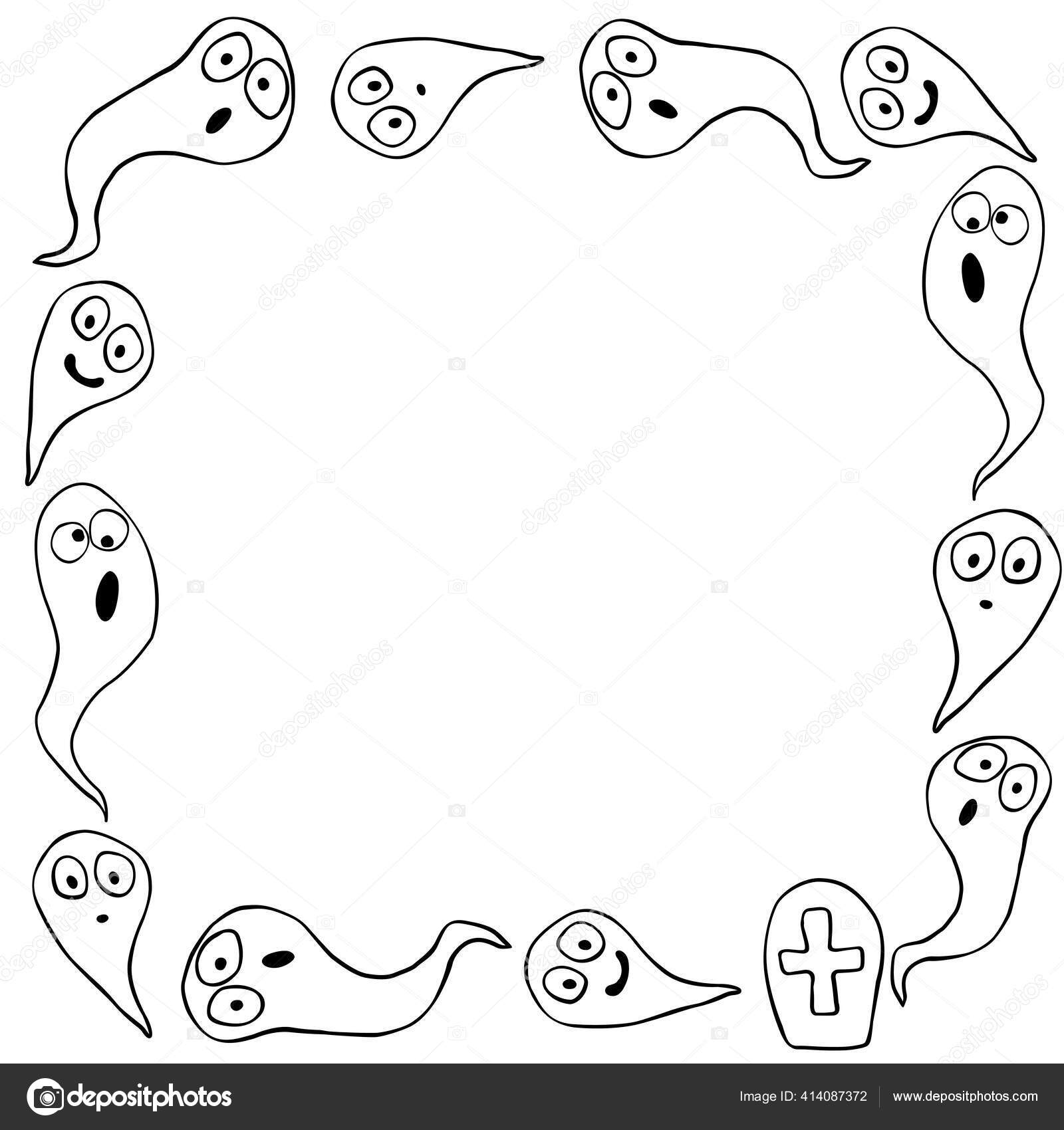 Halloween Persegi Bingkai Dengan Hantu Perbatasan Hari Libur Latar …