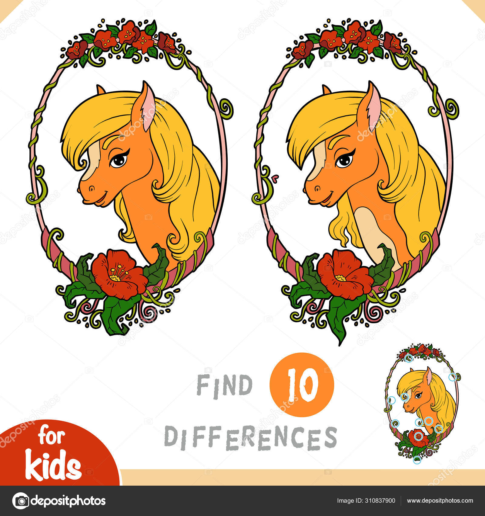 Menemukan perbedaan, permainan pendidikan untuk anak-anak, kuda …