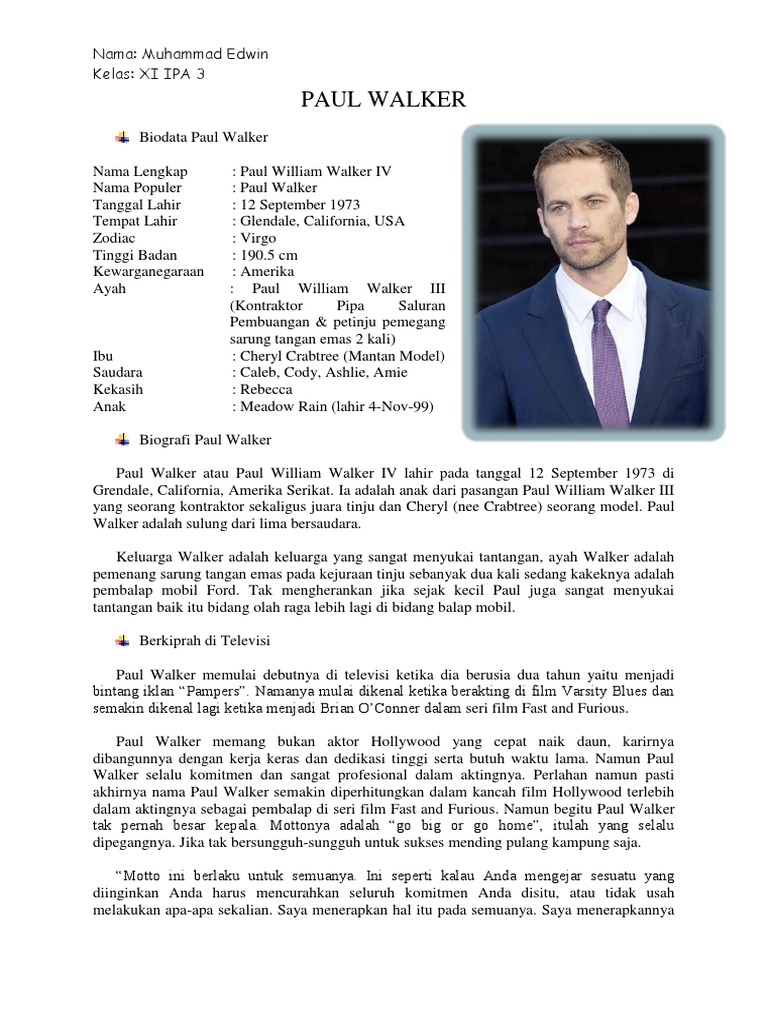 Biodata Paul Walker Bahasa Indonesia