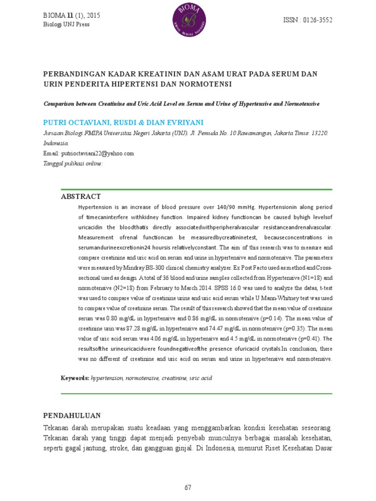 Perbandingan Kadar Kreatinin Dan Asam Urat Pada Serum Dan …