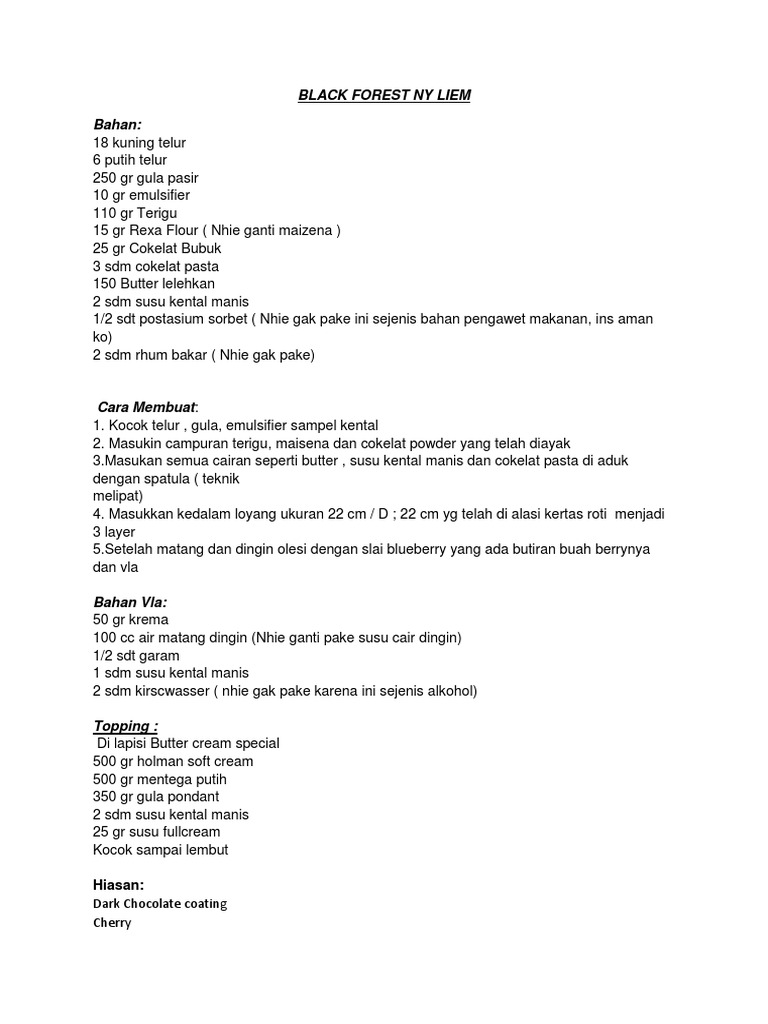68 Resep : Black Forest Ny Liem
