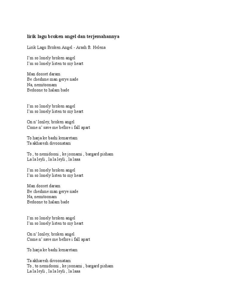 lirik lagu broken angel dan terjemahannya
