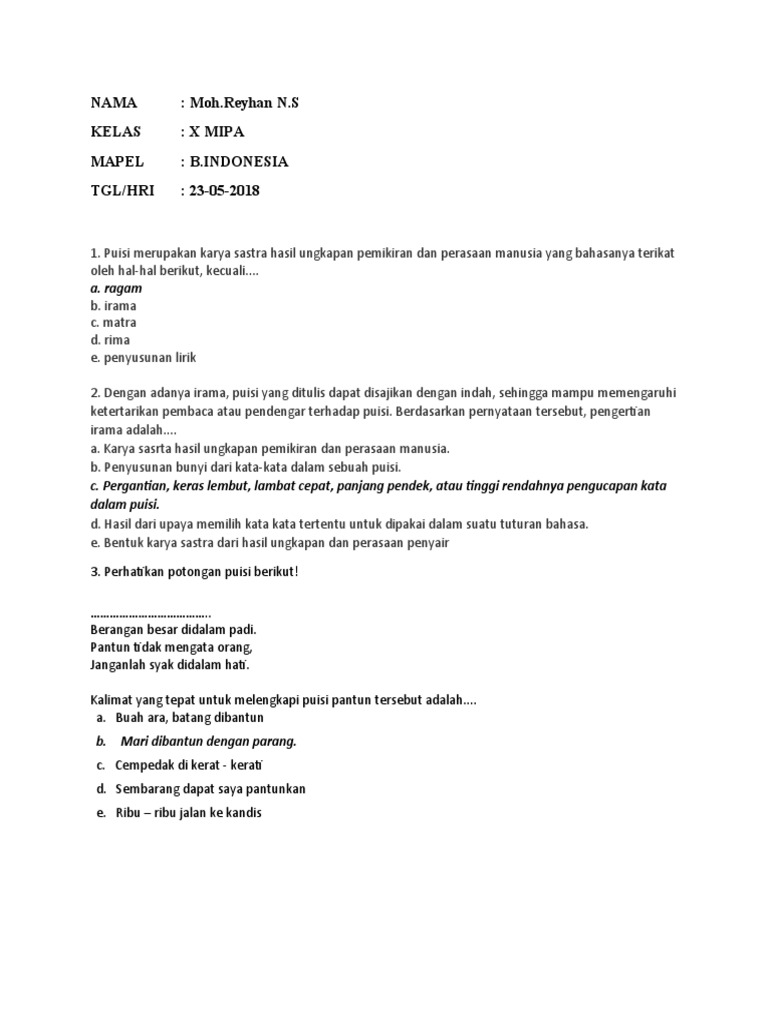 1.puisi “sajak” terdiri atas berapa bait dan berapa larik 2.apa …