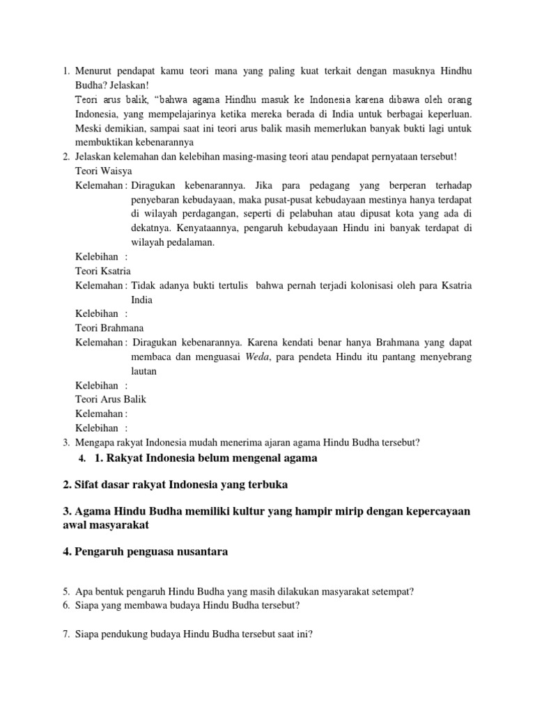 Jelaskan teori masuknya hindu budha dan menurutmu teori mana yang …