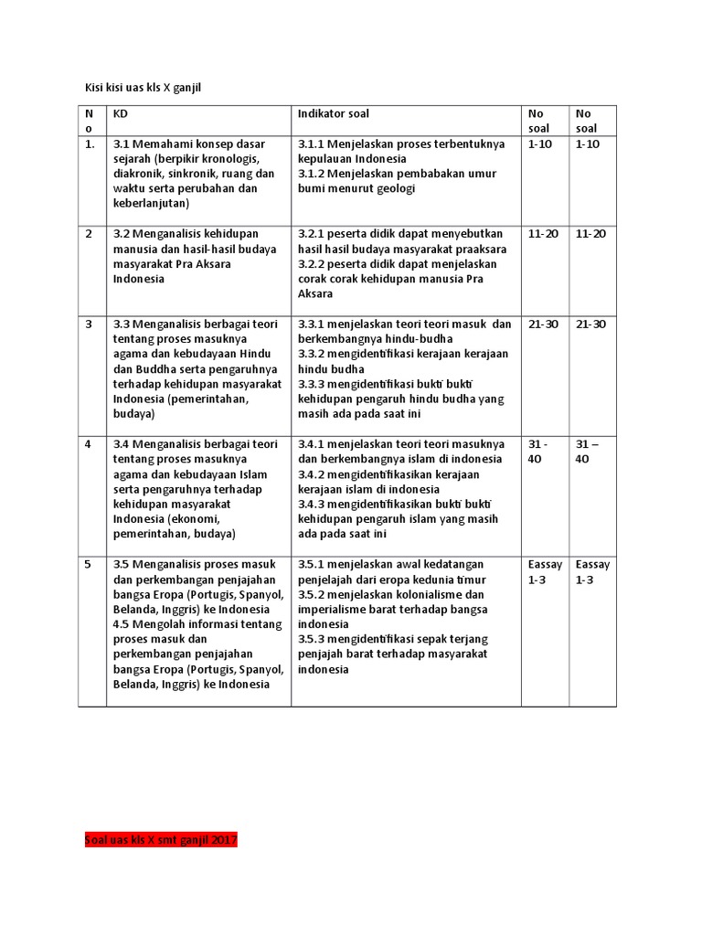 Kisi Kisi DAN BANK SOAL Kls X Ganjil