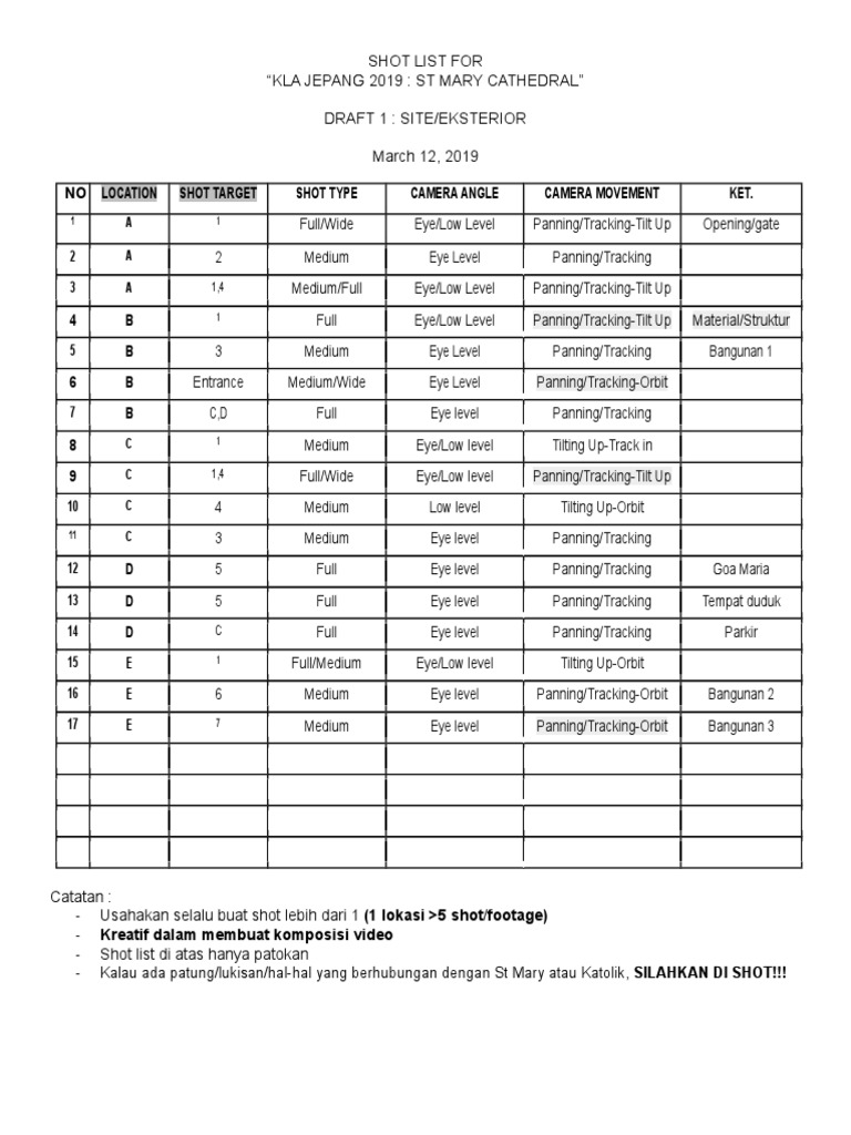 No Location Shot Target Shot Type Camera Angle Camera Movement Ket …