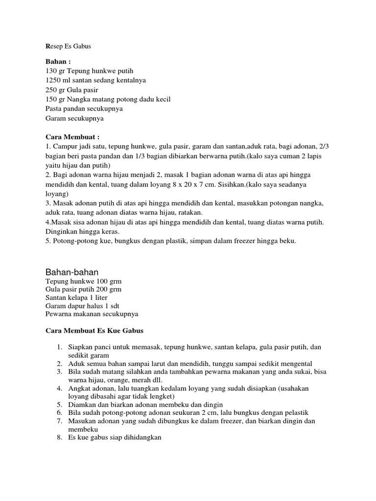 Resep Es Gabus/ Kue/ Wadai