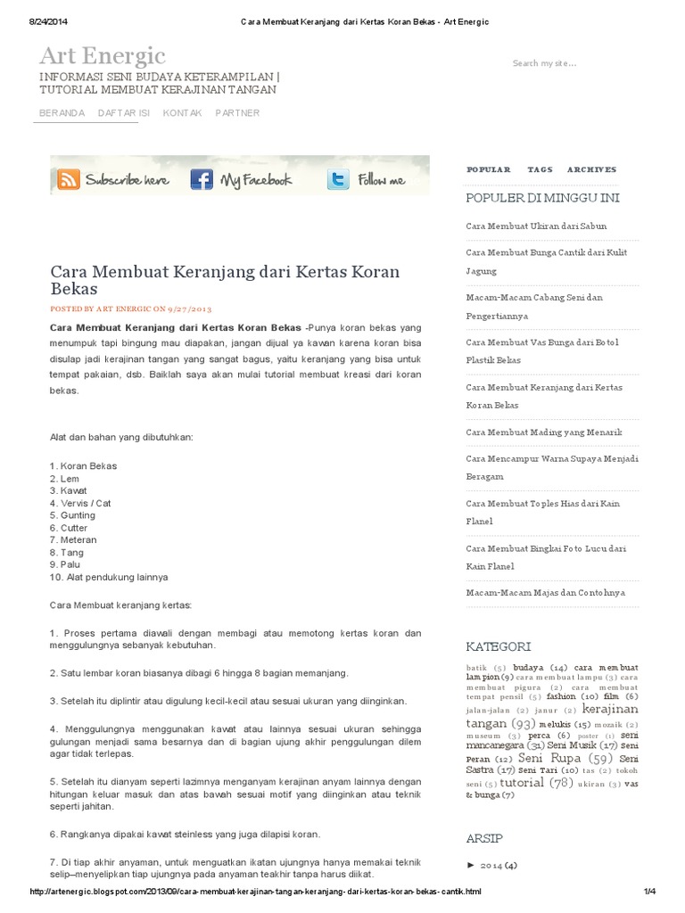 Cara Membuat Keranjang Dari Kertas Koran Bekas - Art Energic