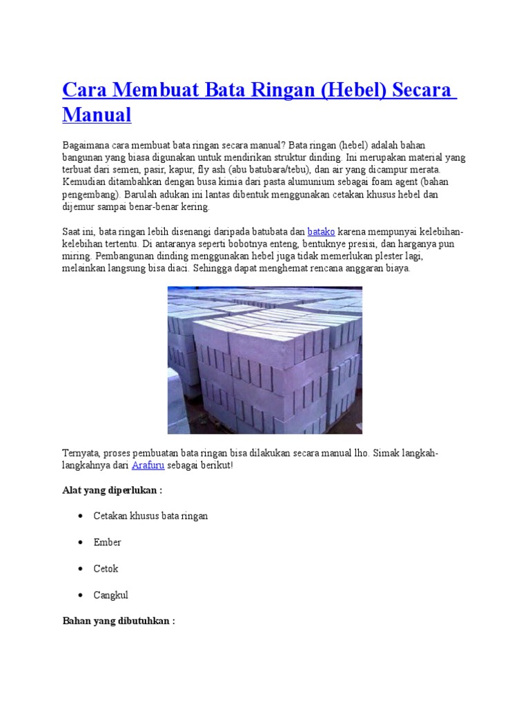 Cara Membuat Bata Ringan (Hebel) Secara Manual - Arafuru