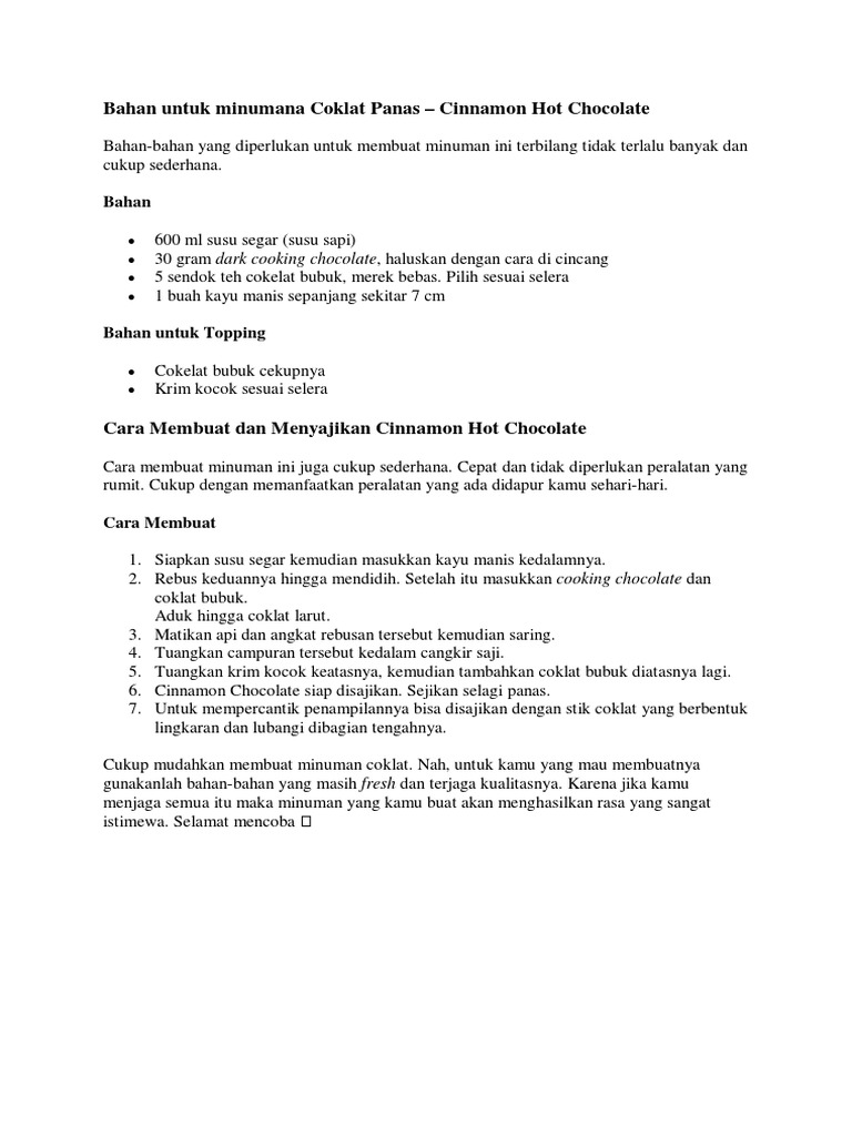 Jual CARA MEMBUAT MINUMAN HOT CHOCOLATE DENGAN COKLAT BUBUK di Lapak DISTRIBUTOR SUPLEMEN FITNESS | Bukalapak