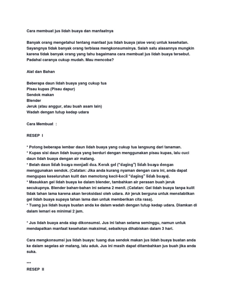 30 resep juice lidah buaya enak dan sederhana ala rumahan - Cookpad