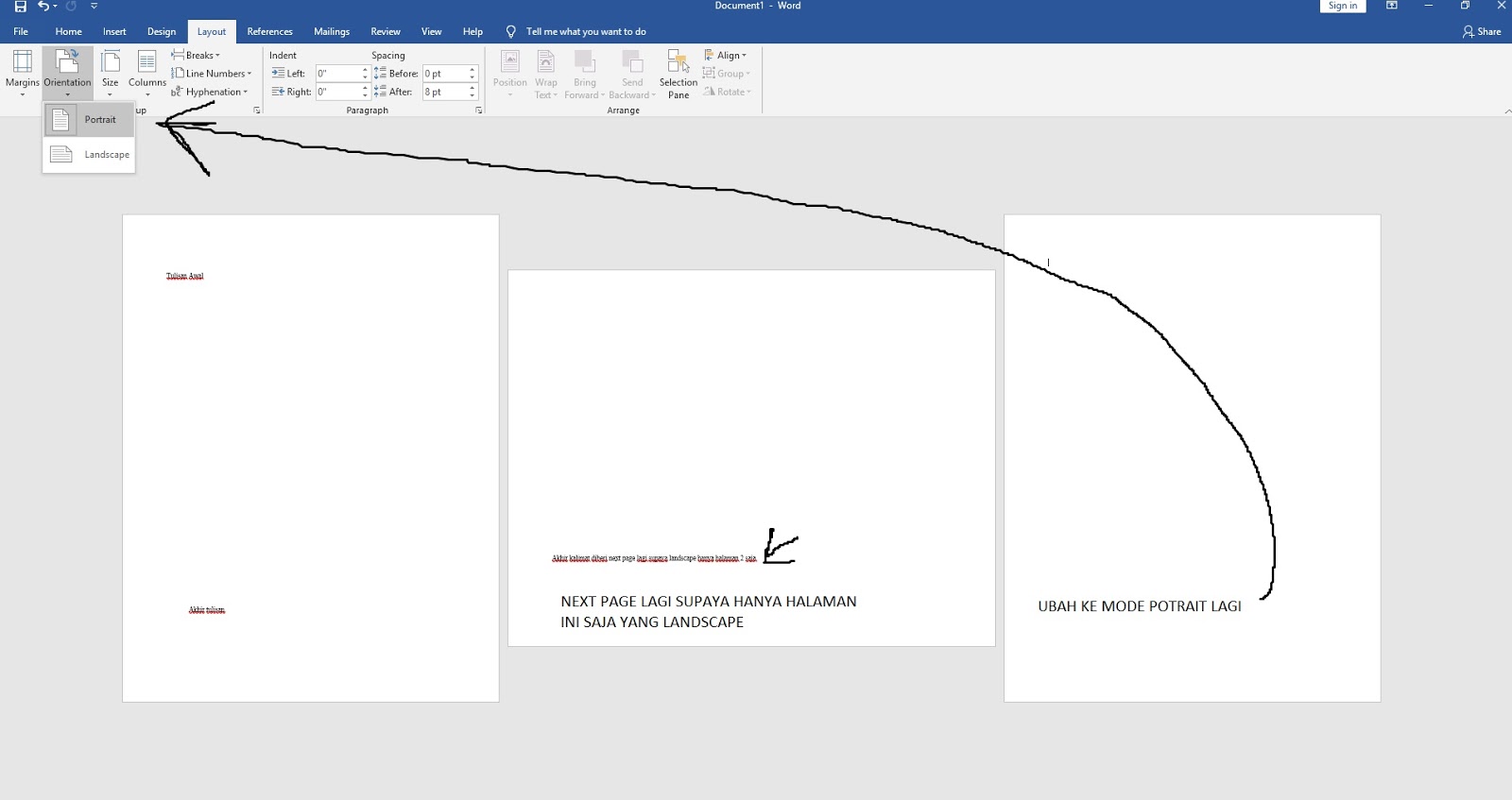 CARA MEMBUAT HALAMAN PORTRAIT DAN LANDSCAPE DALAM SATU FILE DI MS …