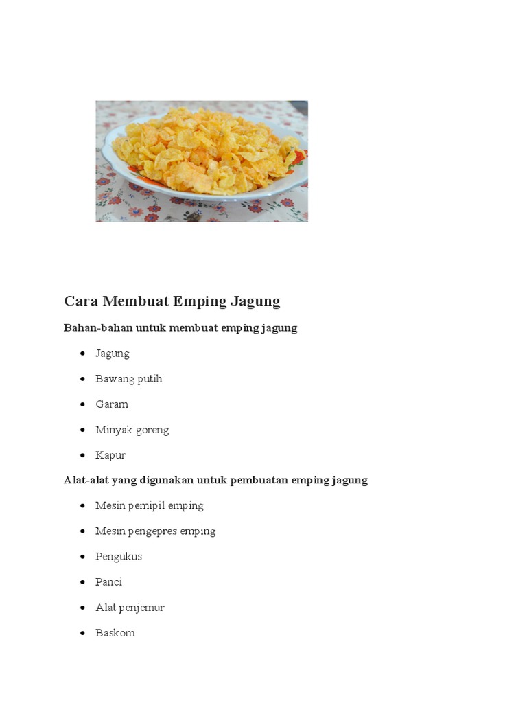 Cara membuat emping jagung merupakan salah satu resep makanan.