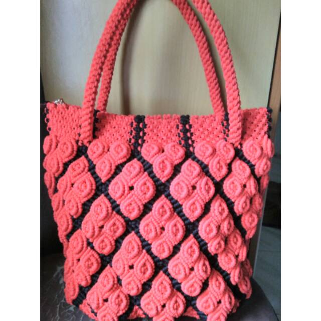 Jual Tas Tali Kur Motif Kemiri Size Sedang - Bagan Sinembah - house of macrame | Tokopedia