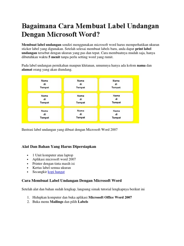 Cara Membuat Label Undangan Dengan Microsoft Word 2007